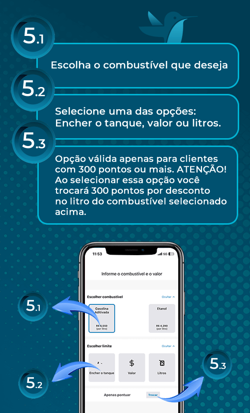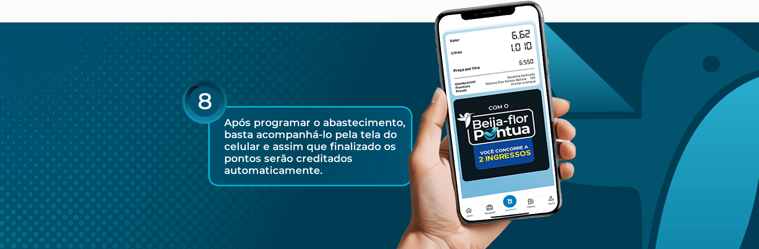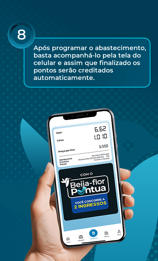 Cada litro abastecido se converte em 1 ponto. Esses pontos se tornam descontos em todo o Grupo Beija-flor.